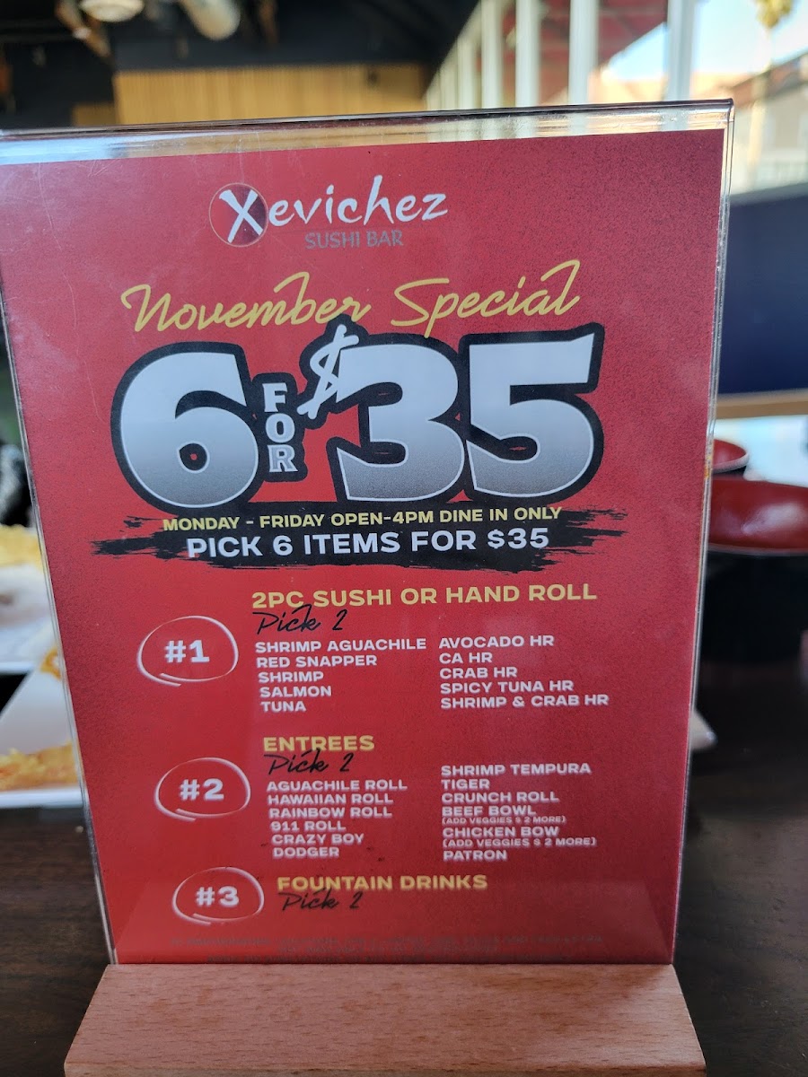 Welcome to Xevichez, a vibrant culinary destination located at 422 W Rancho Vista Blvd, Palmdale, CA. Here, you can savor the delightful fusion of Mexican and Japanese cuisines. The menu is a treasure trove of flavors, starting with appetizers like Dynamite Shrimp ($24.95) and Tempura Veggies ($9.95). For hand roll lovers, the Patron Hand Roll ($10.95) promises a mouthwatering blend of yellowtail and spicy elements.